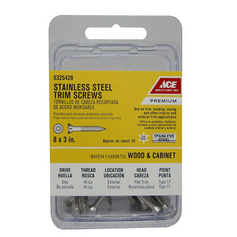 Ace No. 8 S X 3 in. L Star Flat Trim Head Trim Screw 25 pk