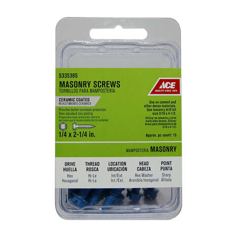 Ace 1/4 in. S X 2-1/4 in. L Slotted Hex Washer Head Masonry Screws 15 pk