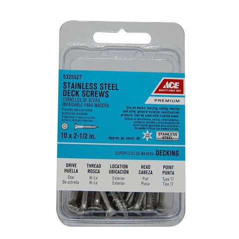 Ace No. 10 S X 2-1/2 in. L Star Flat Head Deck Screws 30 pk