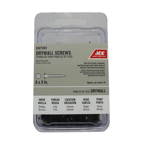 Ace No. 8 S X 3 in. L Phillips Drywall Screws 50 pk