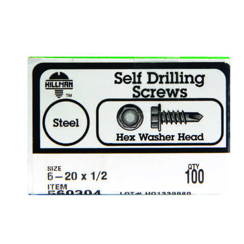 Hillman No. 6-20 S X 1/2 in. L Hex Hex Washer Head Self- Drilling Screws 100 pk