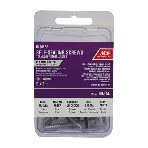 Ace No. 9 S X 2 in. L Hex Washer Head Self-Sealing Screws
