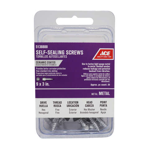 Ace No. 9 S X 3 in. L Hex Washer Head Self-Sealing Screws