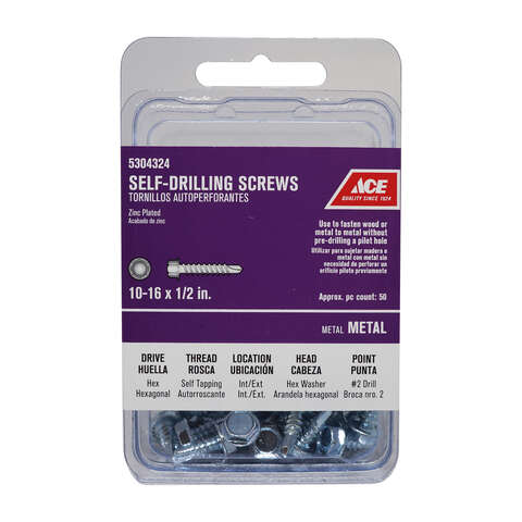 Ace No. 10 S X 1/2 in. L Hex Washer Head Self- Drilling Screws