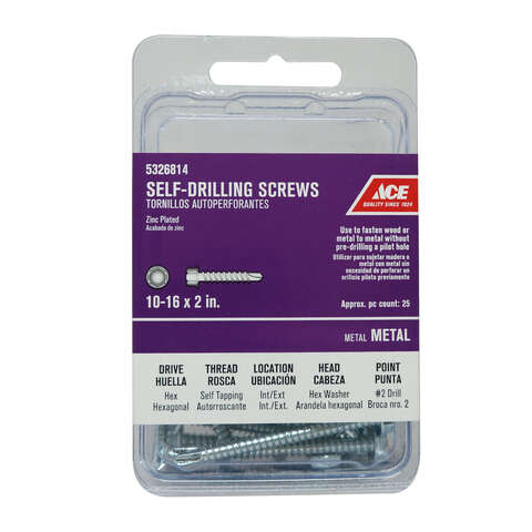 Ace No. 10 S X 2 in. L Hex Hex Washer Head Self- Drilling Screws