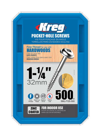 Kreg No. 7 S X 1-1/4 in. L Square Zinc-Plated Pocket-Hole Screw 500 pk