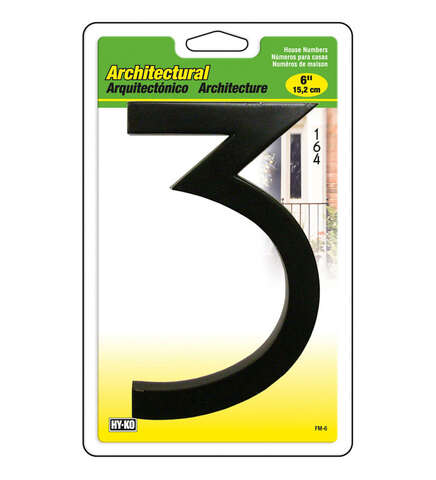 Hy-Ko 6 in. Black Brass Screw-On Number 3 1 pc