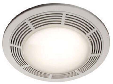 Ideal for small to average-size bathrooms and powder rooms, the Broan® 750 100 CFM Exhaust Fan/Light with Night-Light quickly reduces humidity and odors for more comfortable living. With a quiet sound performance rating of 5.0 sones, this stylish bathroom ventilation fan can be mounted directly above the bathtub or shower if installed with a GFCI circuit. In addition, the plastic grille is impervious to your bath climate, while its round shape eliminates the need to square with your bathroom walls.