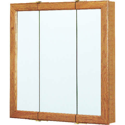 Continental Cabinets 24 in. W x 4-1/4 in. D x 24 in. H Rectangle Tri-View Medicine Oak