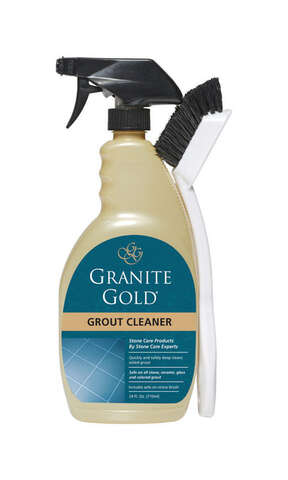 When cleaning tile grout, ordinary grout cleaners can harm surrounding stone surfaces. Granite Gold Grout Cleaner® quickly and safely deep cleans soiled grout, and is safe on stone, tile, porcelain, colored grout, ceramic and glass. The lightly “citrus-scented” grout cleaner is ready to use and safe on colored grout, and it comes with the Granite Gold Grout Brush® to agitate dirt and grime.