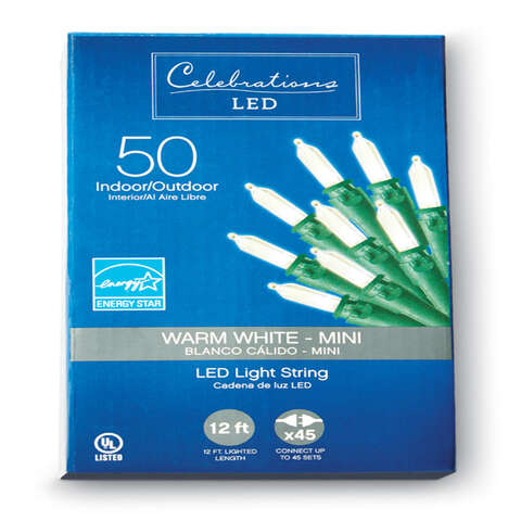 Celebrations Basic LED Mini Clear/Warm White 50 ct String Christmas Lights 12.25 ft.