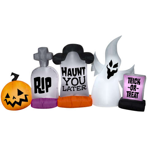Gemmy LED Tombstones With Ghost and Pumpkin Inflatable