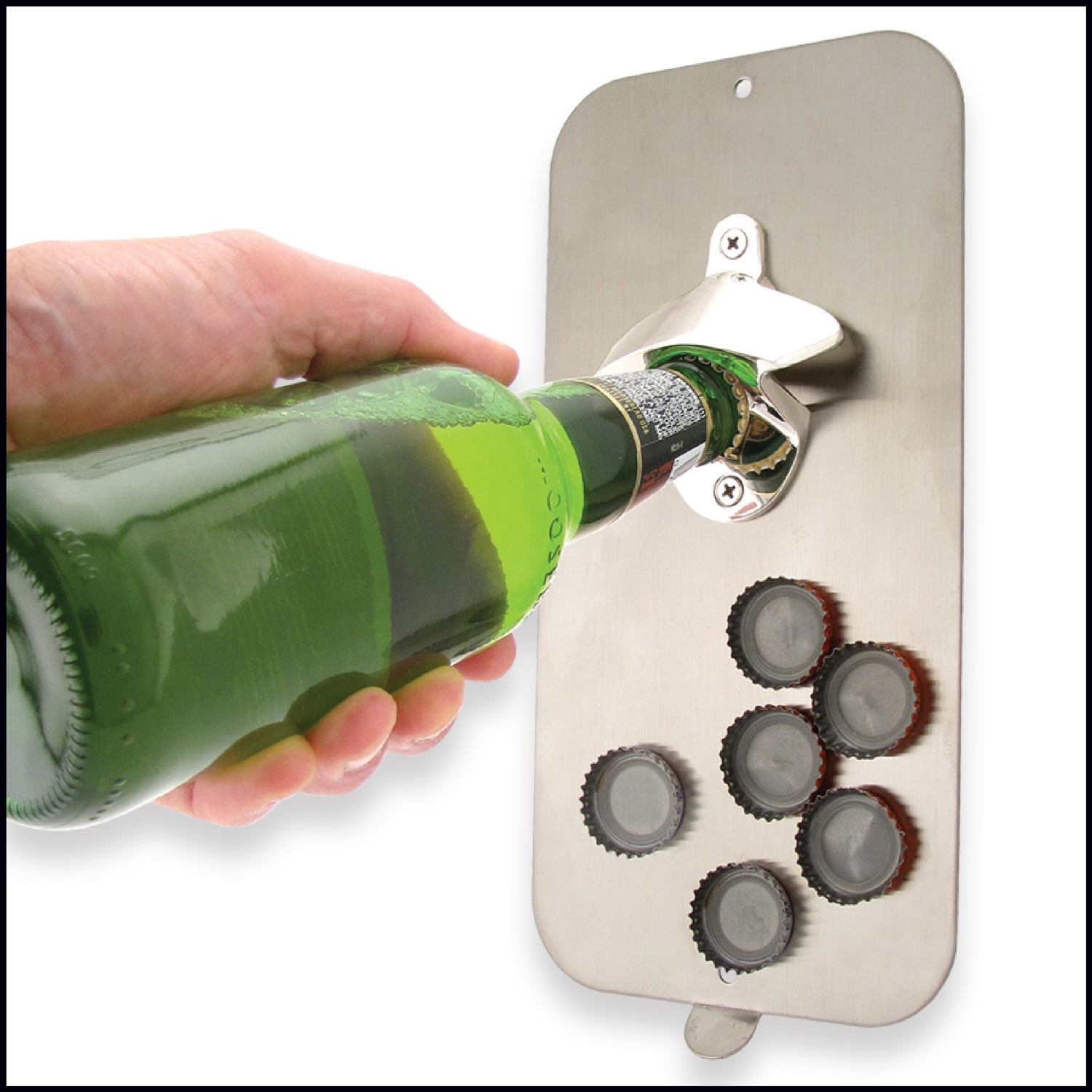 Pop N CatchTM The Magnet Source Brushed Nickel Silver Stainless Steel Manual Magnetic Bottle Opener