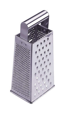 The Progressive deluxe box grater features a comfortable and sturdy grip handle. The large hole grating surface on one side is for potatoes, the medium holes are for cheeses and the small holes are for hard cheeses and chocolates.