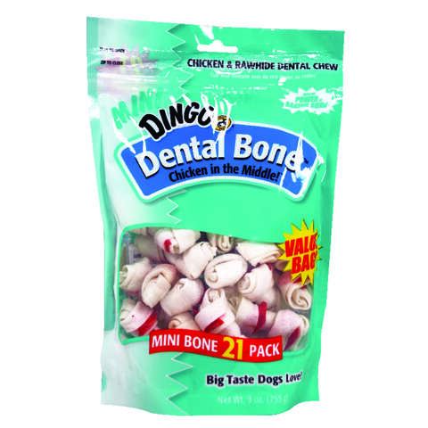 Dingo Dental Bone Small Adult Rawhide Bone Chicken 2.5 in. L 21 pk
