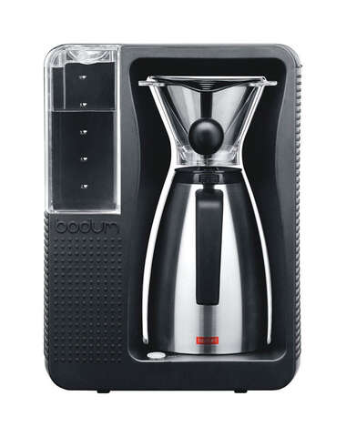 The Bodum BISTRO Automatic Pour Over Coffee Maker showcases innovative technology by automating the popular pour over method. The sleek, contemporary design looks great on your counter from all angles. You can watch how your coffee brew in less than 6 minutes. Coffee maker overflows if you use too much of grind or if the reservoir is left full overnight. Kindly note the reservoir should be empty when not in use.