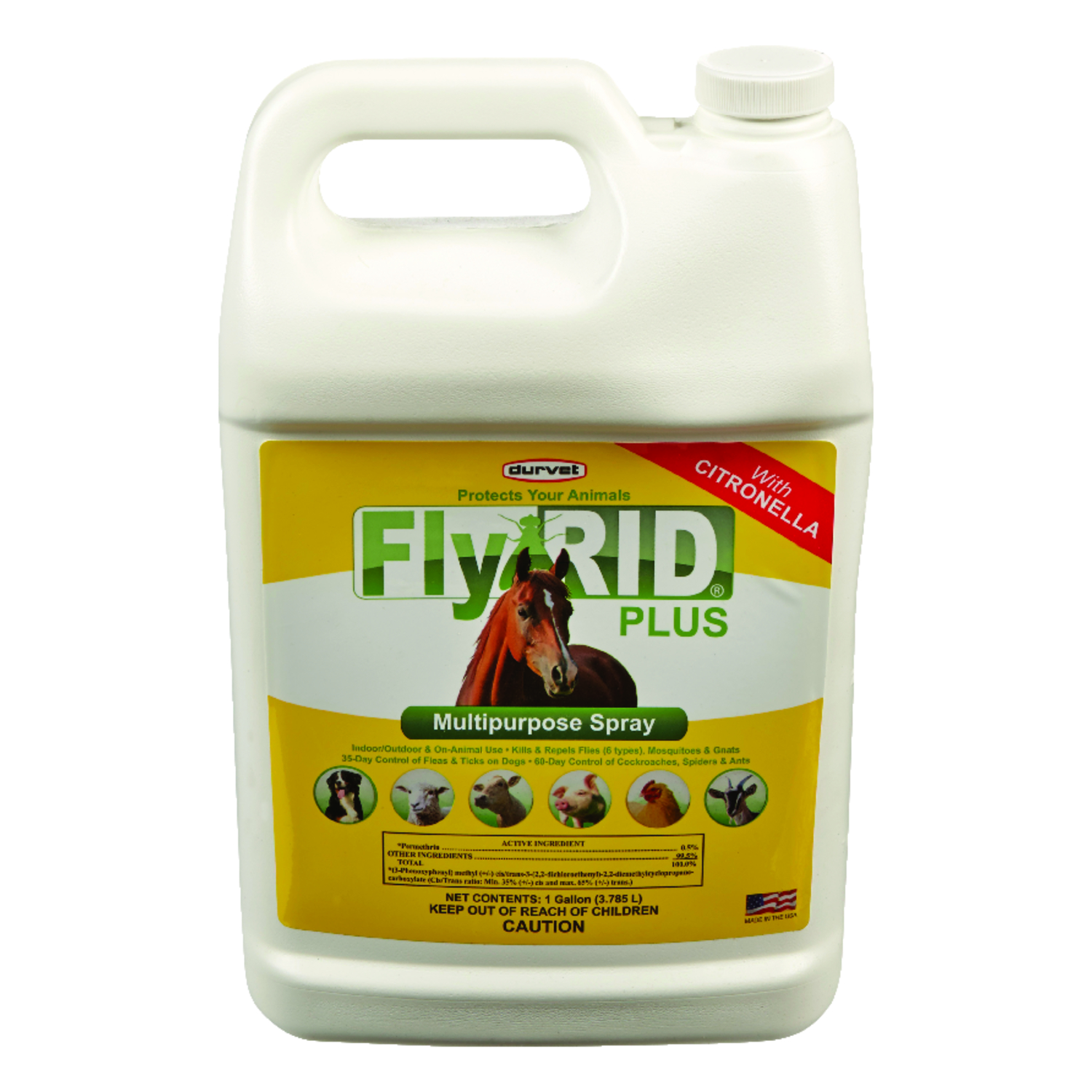 Fly Rid Plus Spray fly spray for horses and livestock provides powerful yet safe protection against harmful pests. Multi purpose, multi species ready to use insect control spray kills and repels horse, horn, face, house, stable and deer flies, mosquitoes and gnats. Fly Rid also controls adult and larvae stages of fleas and ticks on dogs for 35 days.Properties