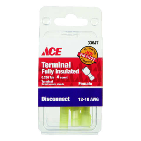 Ace Insulated Wire Female Disconnect Yellow 4 pk