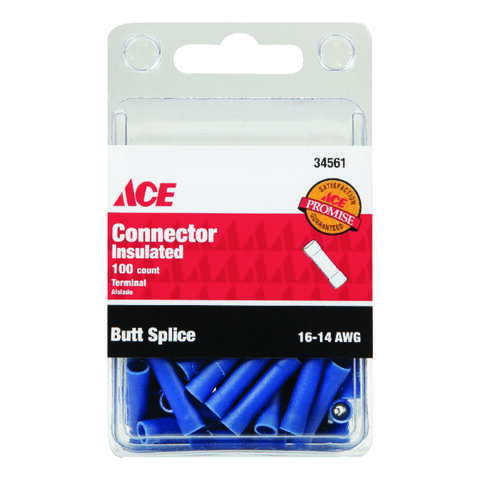 Ace Insulated Wire Butt Connector Blue 100 pk
