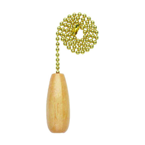With its traditional style, this natural finish wooden handle pull chain goes well with most decors. The oblong, natural finish handle is fixed to the end of a 12 inch beaded chain and has clean, simple lines without any embellishments. This pull chain is an ideal replacement chain for ceiling fan and lighting fixtures in living rooms, bedrooms and kitchens.