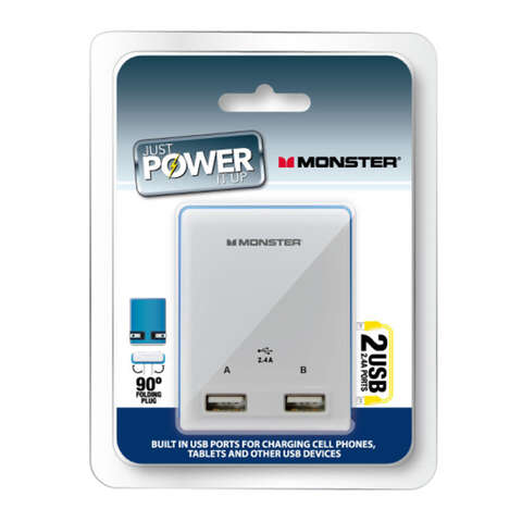Monster Just Power It Up Adapter 2 outlets Wall Tap Surge Protection 1 pk