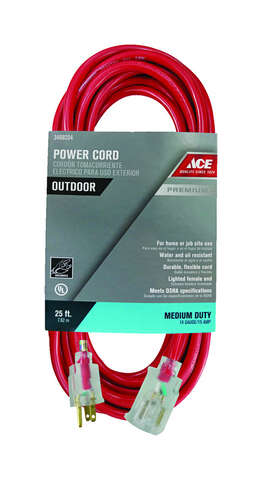 Ace Outdoor 25 ft. L Red Extension Cord 14/3 SJTOW
