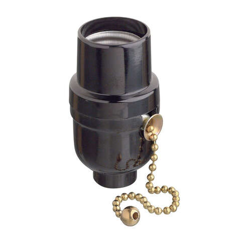 Leviton Plastic Medium Base Pull Chain Socket 1 pk