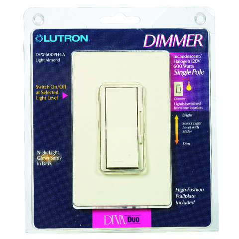 Lutron Diva Light Almond 600 W Slide Dimmer Switch 1 pk