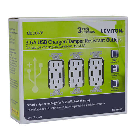 Leviton Decora 15 amps 125 V White Outlet and USB Charger 5-15R