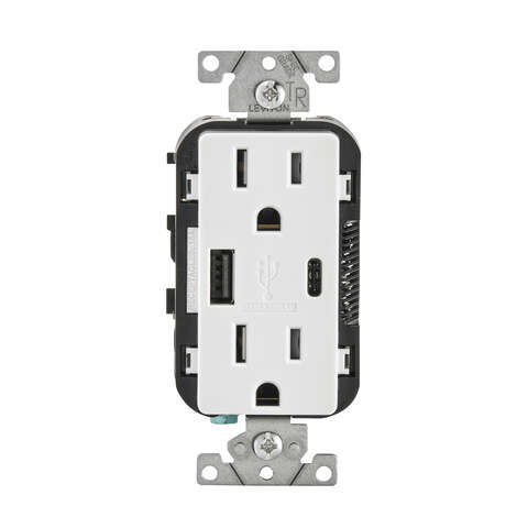 Leviton Decora 15 amps 125 V White Outlet and USB Charger 5-15R 1 pk
