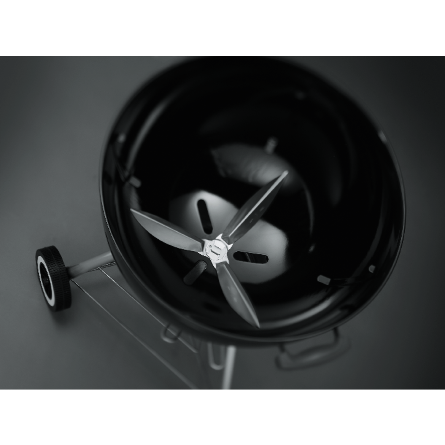 Dust-ups are a breeze on your 22 inch Weber grills with this ingenious ash sweeper from Weber. Three damper blades knife through charcoal remnants in the bottom of the kettle, funneling ash through the vent holes and into a large-capacity ash catcher sold separately. The one-touch cleaning system makes ash disposal a lot less messy and keeps your charcoal grill at-the-ready for your next cooking occasion.Properties