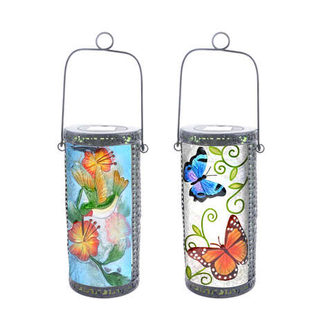 Luminous Garden 15 in. Glass Solar Lantern Multicolored
