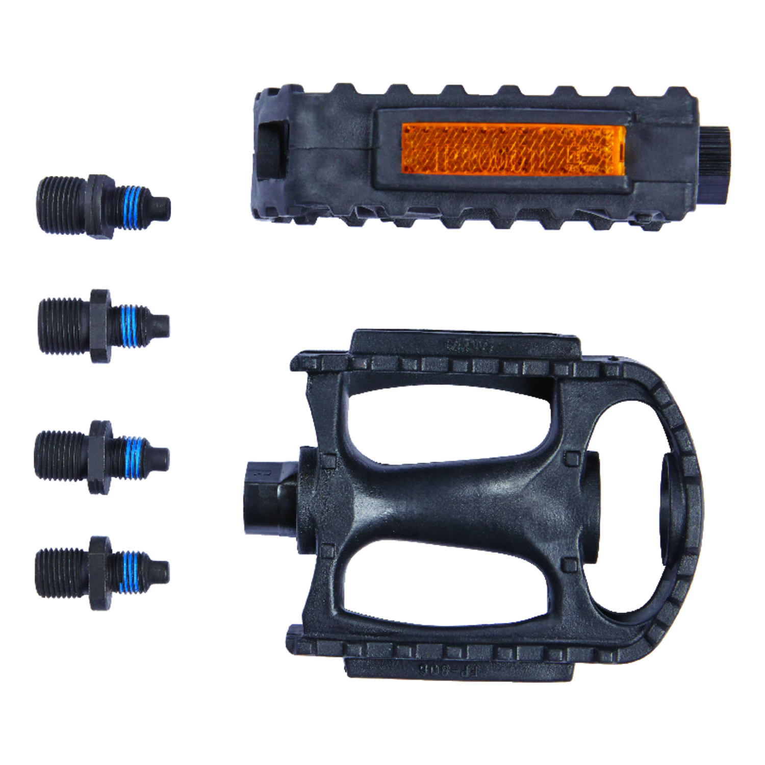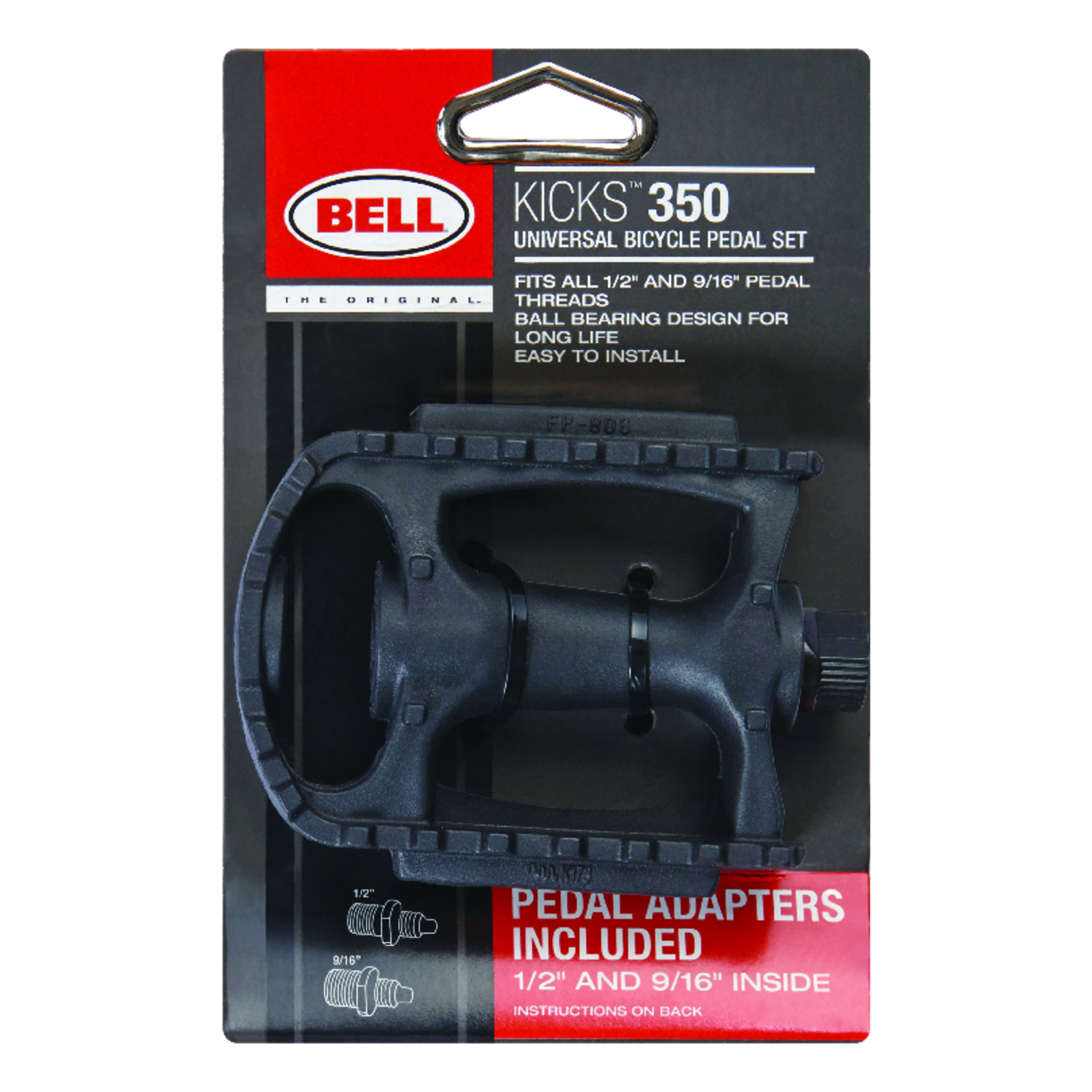These Bell Kicks 350 bike pedals make a superb replacement for broken or worn out pedals. This product will work with both common sizes of pedals. It comes with two adapters of 1/2 inch and 9/16 inch, that will allow these pedals to fit most bikes. They are made of a durable nylon resin with orange safety reflector strips on either side of the pedal to help increase visibility. These universal pedals come with full ball bearings for long life.Properties