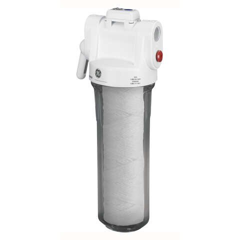 The GE Household Water Pre-Filtration System connects to 3/4 in. plumbing to filter out sand, sediment and rust from all your household water. The pre-filtration system features a 3-position bypass valve to allow you to change the filter without turning off your water supply. This water system helps to provide clean, clear water for showers, dishwashers and laundry