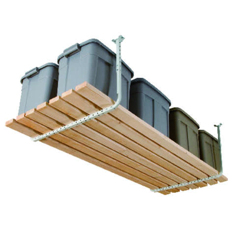 Take advantage of hidden storage space above with this pair of HyLoft ceiling storage racks. Great for the garage, attic and under the deck or porch, the rack braces adjust to accommodate any ceiling joist configuration. Adjust the width and the height as needed. Expand the depth to any length you desire, including the entire length of your garage, if you need it to store a 24 feet. PVC pipe. Use with or without a platform for support. The rack can also be attached below or onto an existing HyLoft ceiling storage unit to create a 2nd tier of storage.