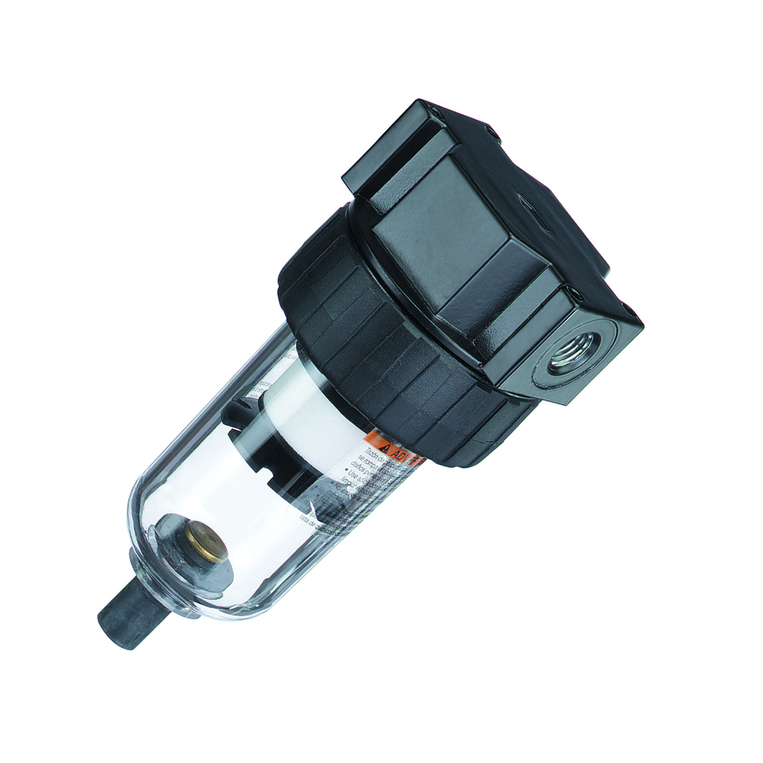 Air line filters compact series polycarbonate port size 3/8 inch filtration removes airborne solid contaminants which may cause wear or failure of pneumatic components. All filters are complete with filter element and either manual or automatic drains. Maximum operating pressure is 150 PSI at 125 degree Fahrenheit with polycarbonate bowl.Properties