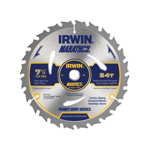 Irwin Marathon 7-1/4 in. D X 5/8 in. S Carbide Circular Saw Blade 24 teeth 1 pk