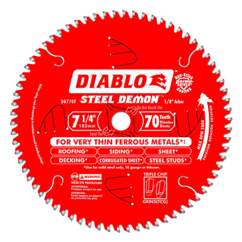 Diablo Steel Demon 7-1/4 in. D X 5/8 in. S Carbide Tip Steel Circular Saw Blade 70 teeth 1 pc