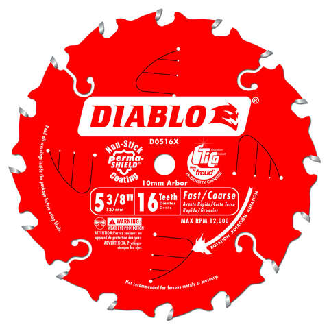 Diablo 5-3/8 in. D X 10 mm S Cordless Trim Carbide Tip Circular Saw Blade 16 teeth 1 pc