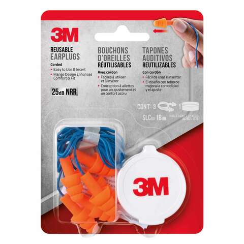 3M 25 dB Polyurethane Foam Ear Plugs Blue/Orange 3 pair
