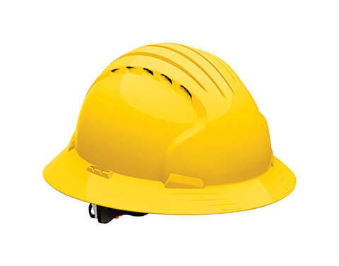 Safety Works Revolution 6-Point Ratchet Full Brim Hard Hat Yellow Vented